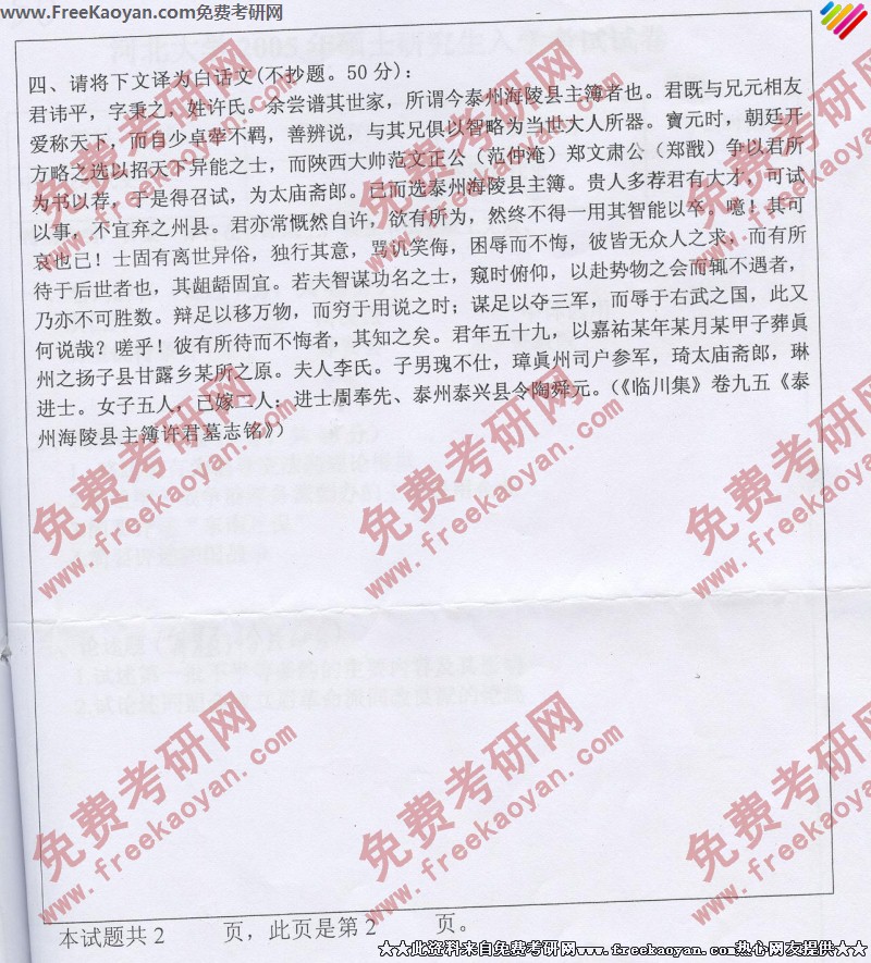 专业课考研经验 本站小编 FreeKaoyan 2018-01-23河北大学2005年考研真题-翻译与写作