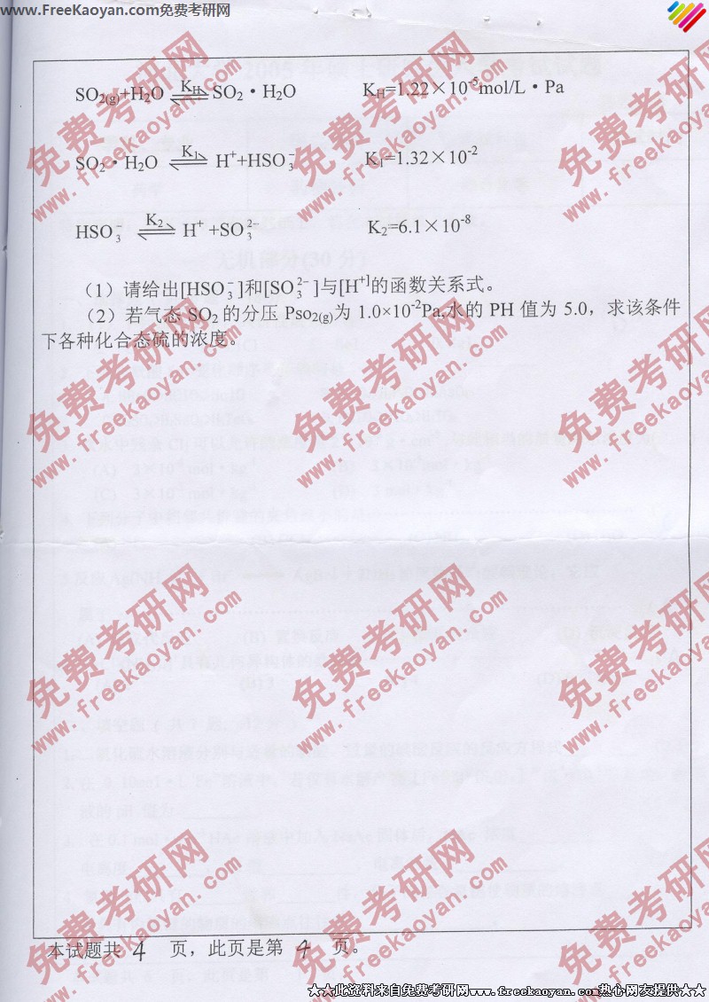 专业课考研经验 本站小编 FreeKaoyan 2018-01-23河北大学2005年考研真题-分析化学