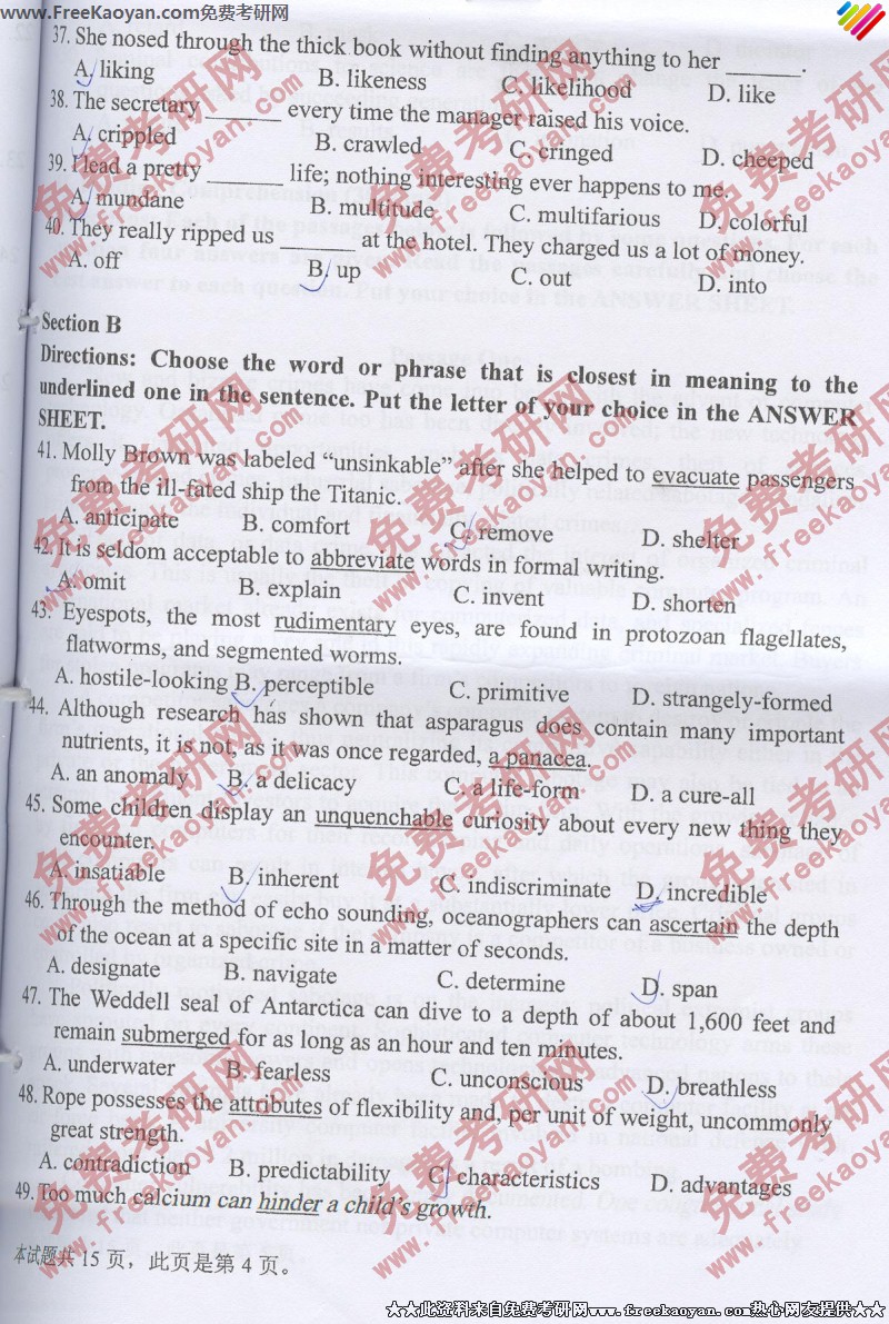 专业课考研经验 本站小编 FreeKaoyan 2018-01-23河北大学2005年考研真题-二外英语