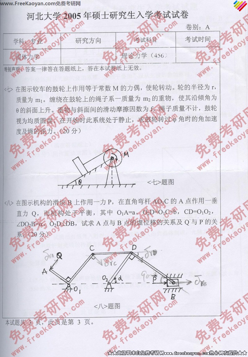 河北大学2005年考研真题-理论力学(3)