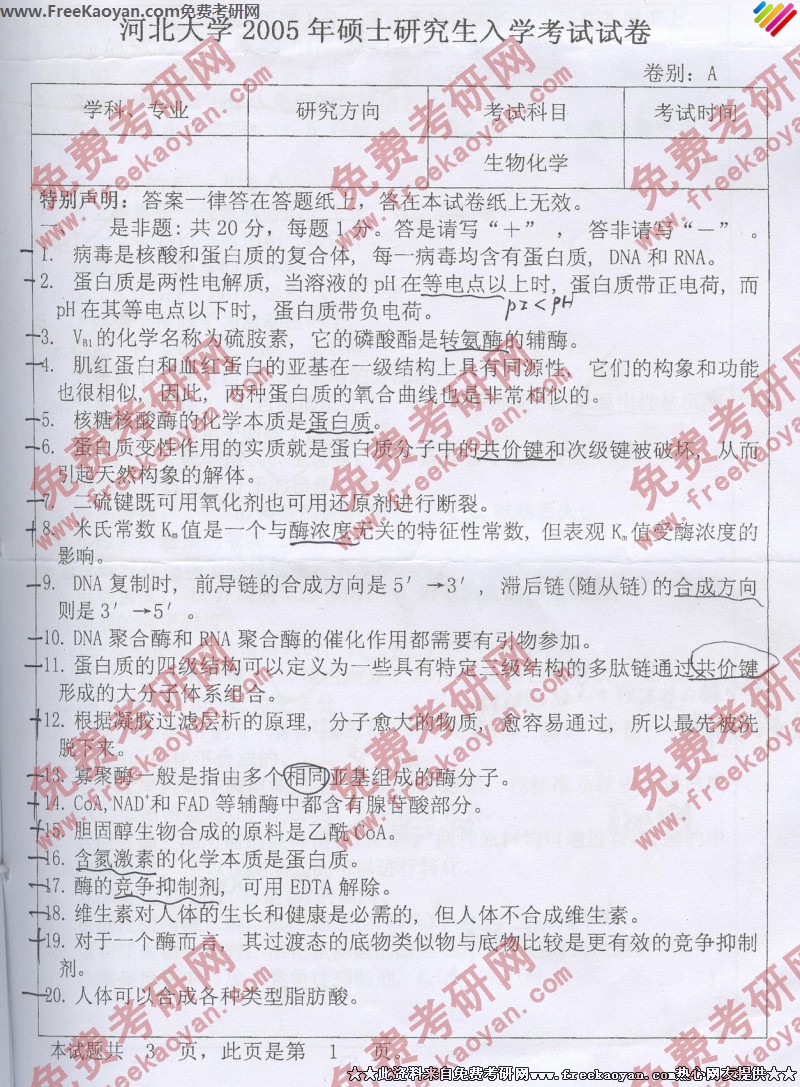专业课考研经验 本站小编 FreeKaoyan 2018-01-23河北大学2005年考研真题-普通生物学