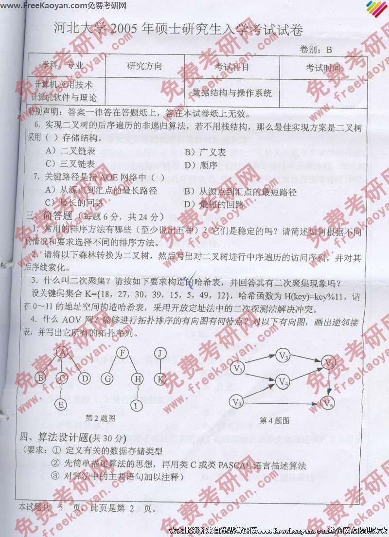河北大学2005年考研真题-数据结构与操作系统(2)
