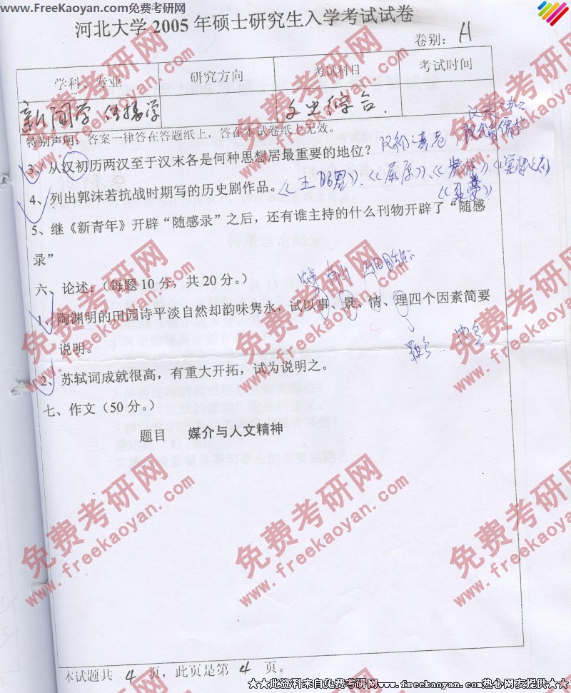 专业课考研经验 本站小编 FreeKaoyan 2018-01-23河北大学2005年考研真题-设计学概论