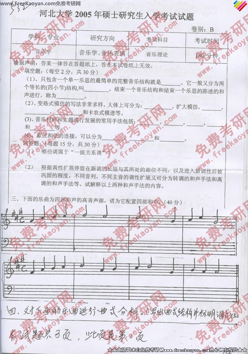 专业课考研经验 本站小编 FreeKaoyan 2018-01-23河北大学2005年考研真题-艺术学