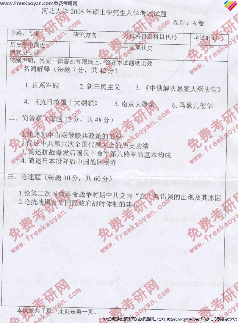 专业课考研经验 本站小编 FreeKaoyan 2018-01-23河北大学2005年考研真题-中国古代史