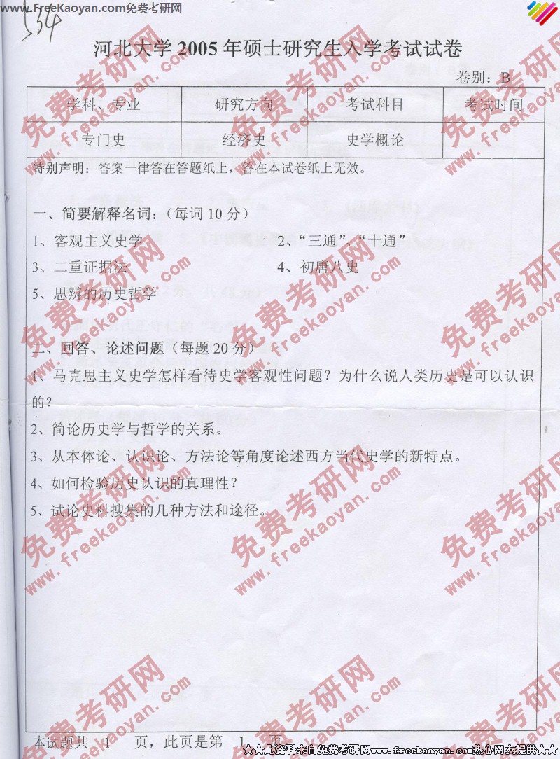 专业课考研经验 本站小编 FreeKaoyan 2018-01-23河北大学2005年考研真题-政经与西经