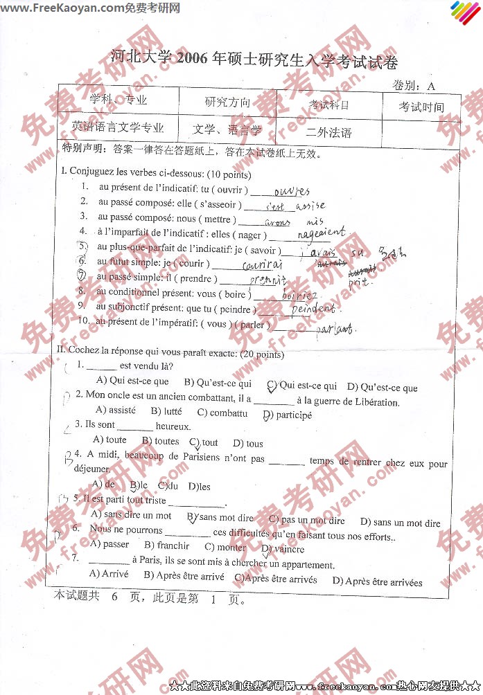 专业课考研经验 本站小编 FreeKaoyan 2018-01-23河北大学2005年考研真题-综合日语