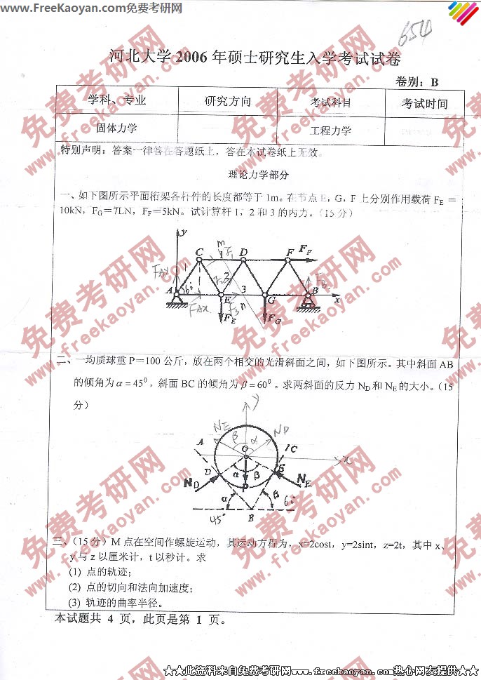 专业课考研经验 本站小编 FreeKaoyan 2018-01-23河北大学2006年考研真题-电动力学