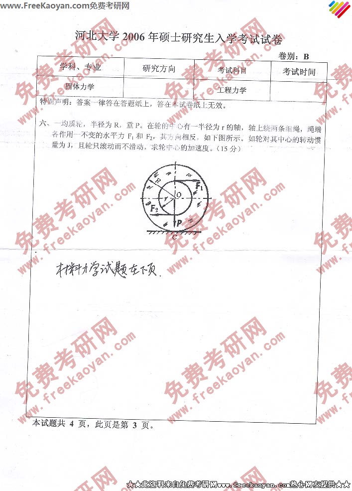 专业课考研经验 本站小编 FreeKaoyan 2018-01-23河北大学2006年考研真题-电动力学