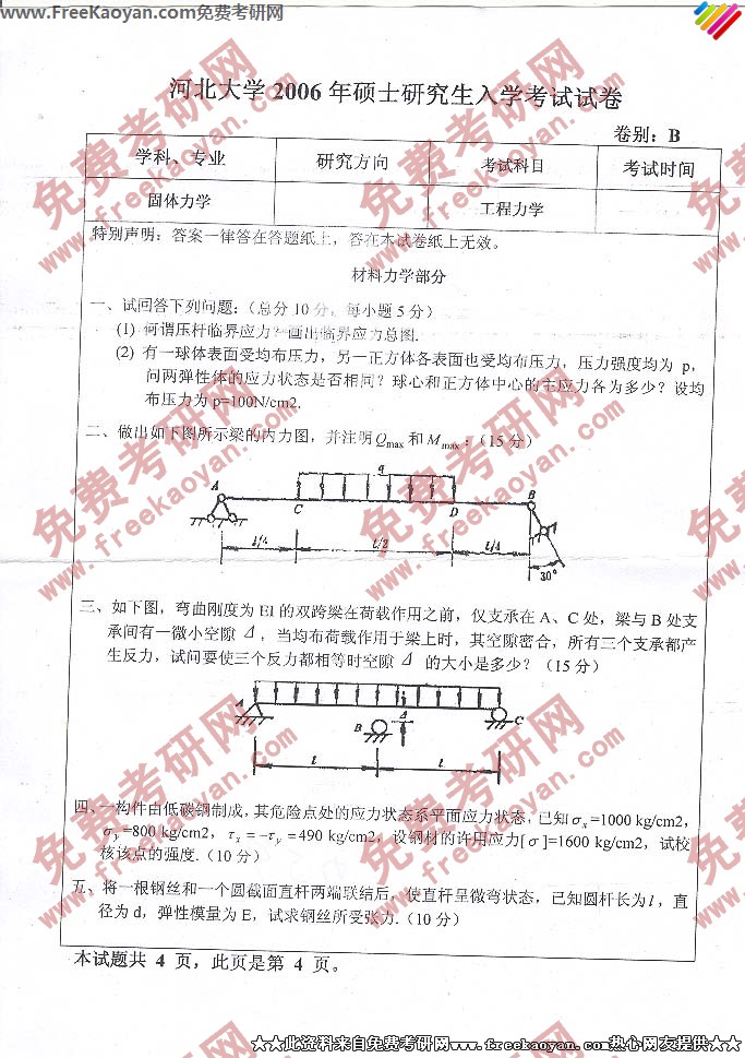 专业课考研经验 本站小编 FreeKaoyan 2018-01-23河北大学2006年考研真题-电动力学