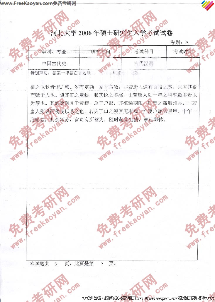 专业课考研经验 本站小编 FreeKaoyan 2018-01-23河北大学2006年考研真题-翻译与写作