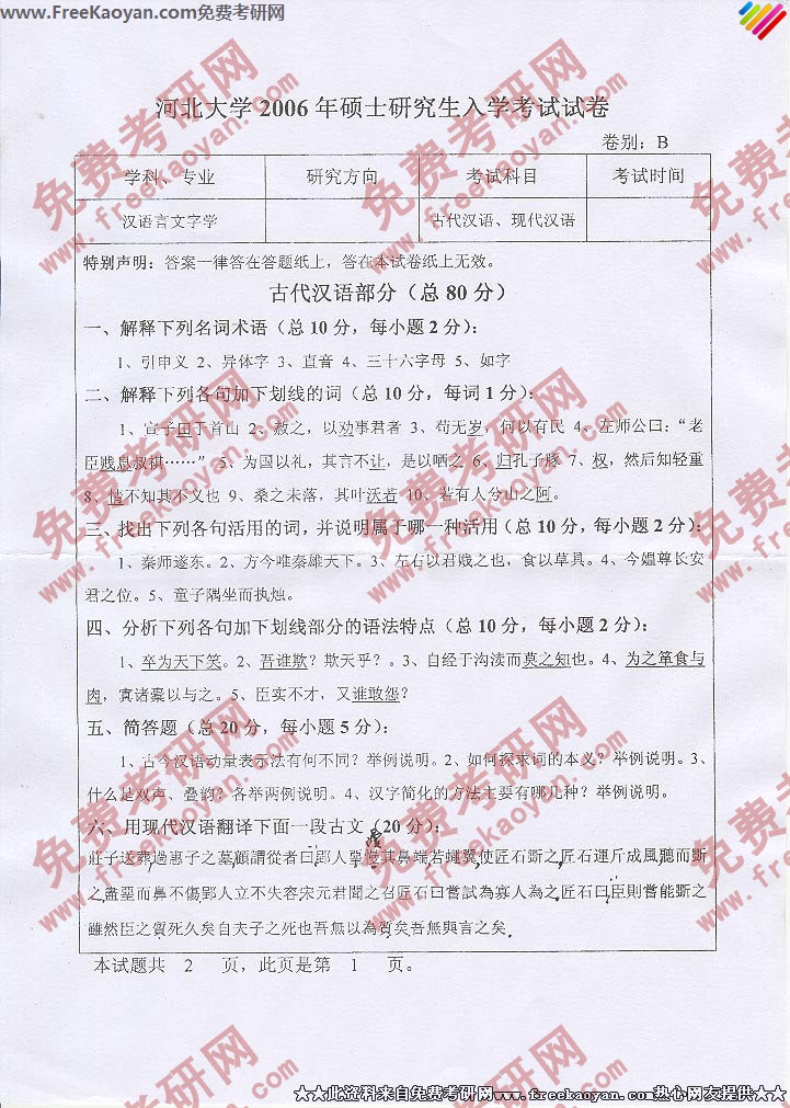 相关话题/考研真题 河北大学 现代汉语 古代汉语