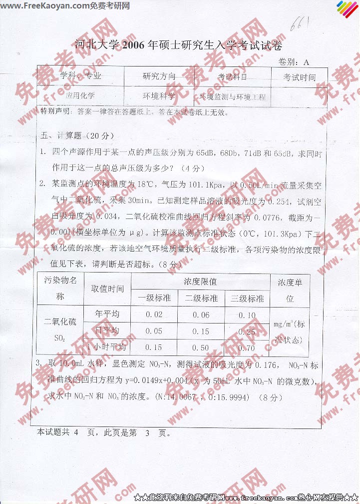 河北大学2006年考研真题-环境监测与环境工程(3)