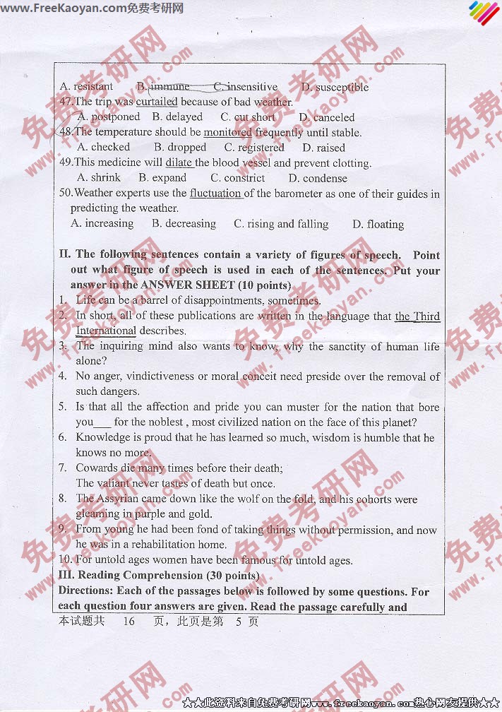 河北大学2006年考研真题-基础英语(5)