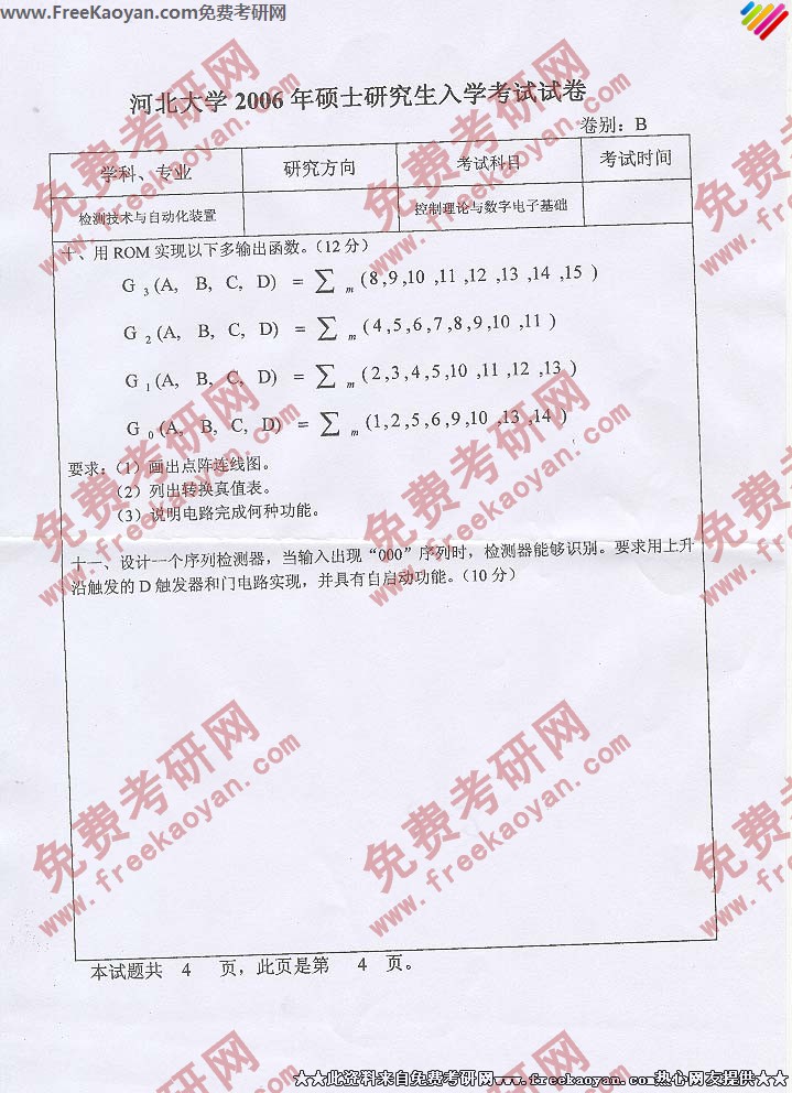 河北大学2006年考研真题-控制理论与数学电子基础(4)