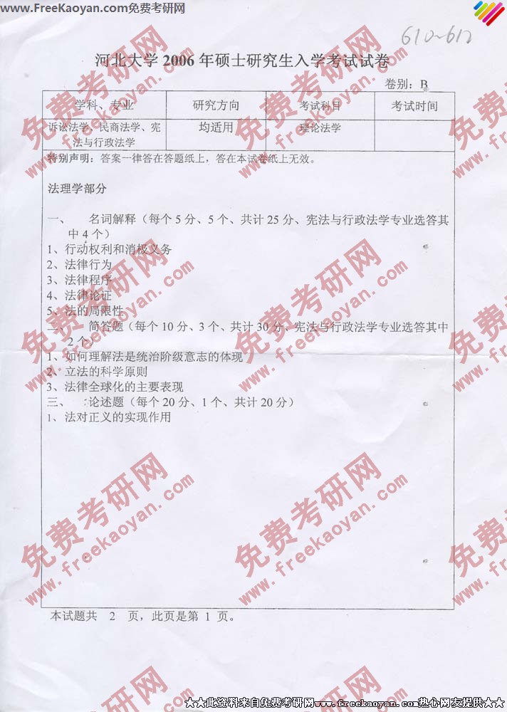 专业课考研经验 本站小编 FreeKaoyan 2018-01-23河北大学2006年考研真题-历史综合