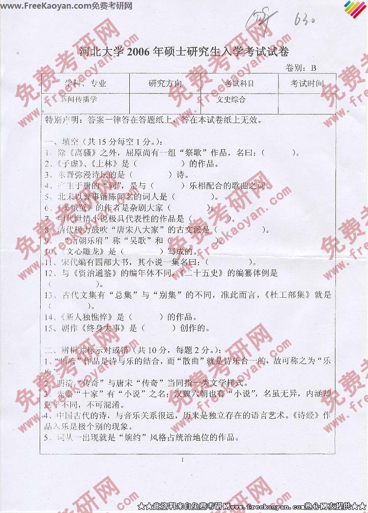 专业课考研经验 本站小编 FreeKaoyan 2018-01-23河北大学2006年考研真题-美学
