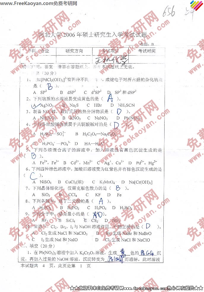 专业课考研经验 本站小编 FreeKaoyan 2018-01-23河北大学2006年考研真题-生物化学