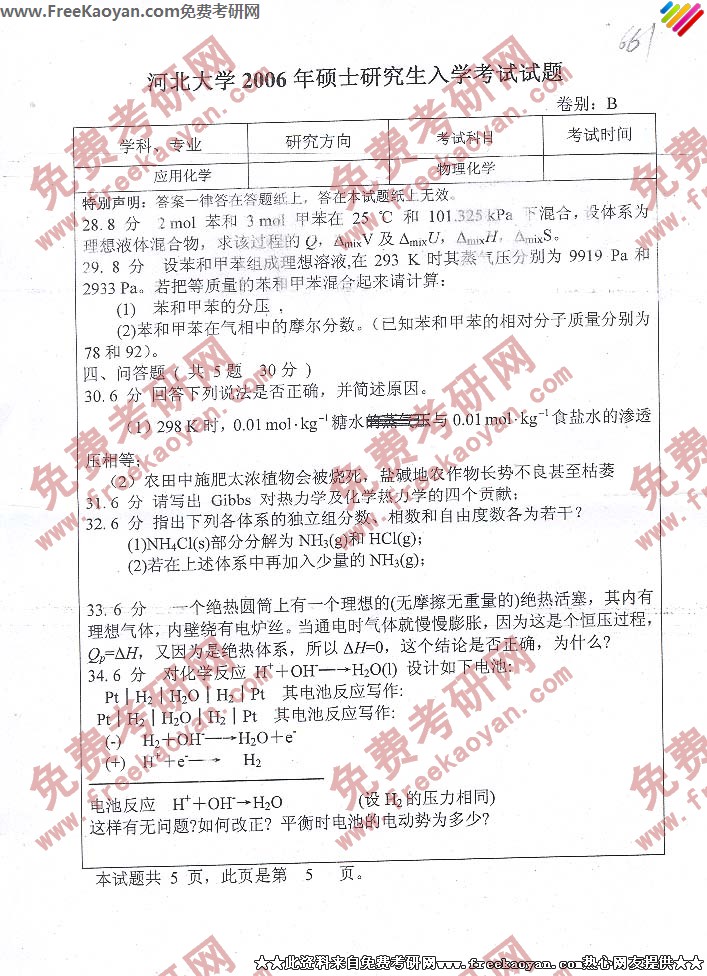 专业课考研经验 本站小编 FreeKaoyan 2018-01-23河北大学2006年考研真题-无机化学