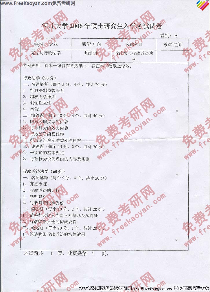 河北大学2006年考研真题-行政法与行政诉讼法学