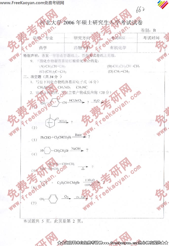 河北大学2006年考研真题-有机化学药学(2)