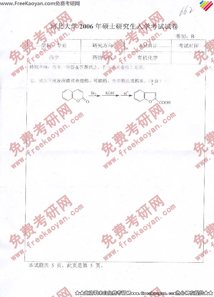 专业课考研经验 本站小编 FreeKaoyan 2018-01-23河北大学2006年考研真题-有机化学