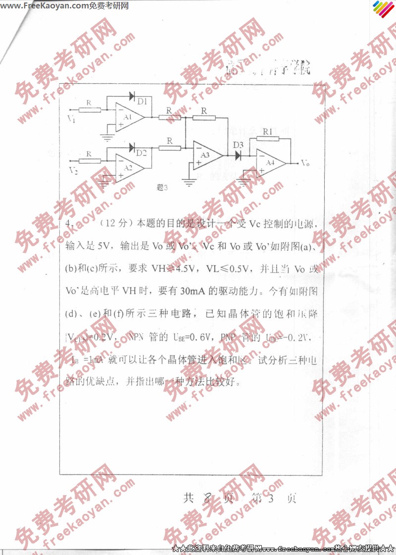 南开大学2003年考研真题-信息技术科学学院综合基础课(3)