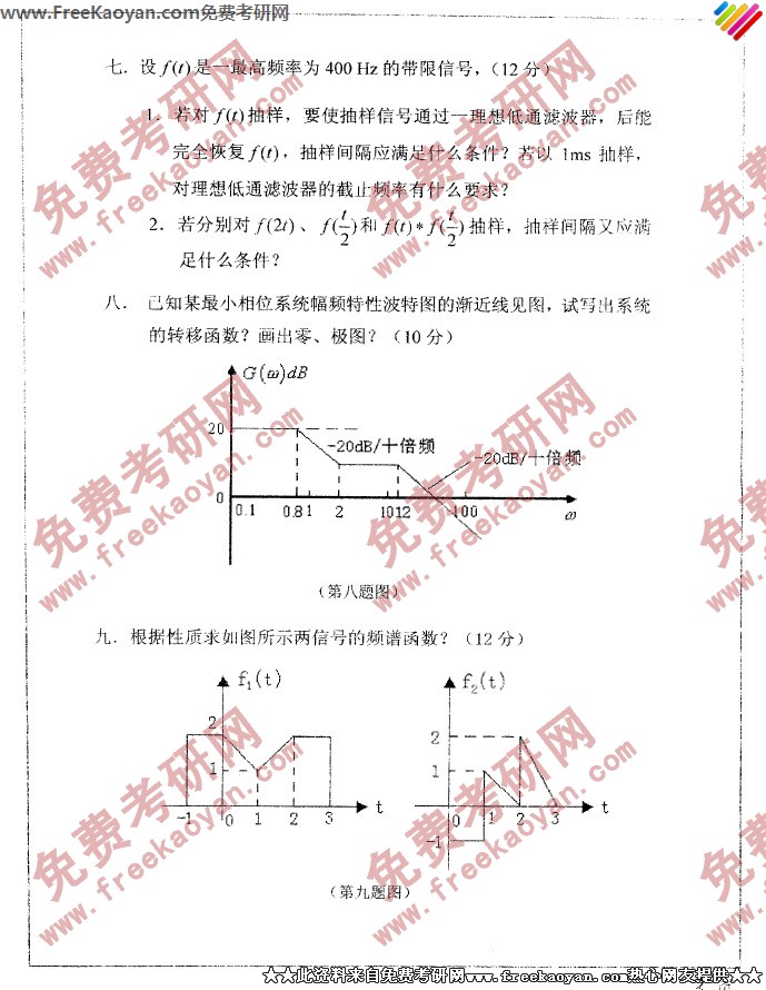 专业课考研经验 本站小编 FreeKaoyan 2018-01-23南开大学2003年考研真题-信号与系统