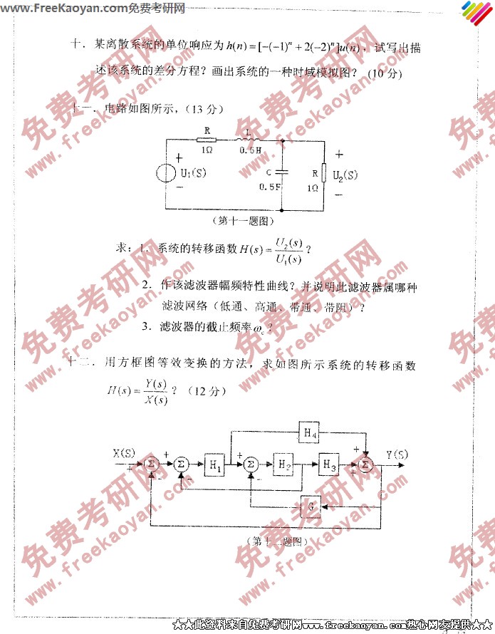 专业课考研经验 本站小编 FreeKaoyan 2018-01-23南开大学2003年考研真题-信号与系统