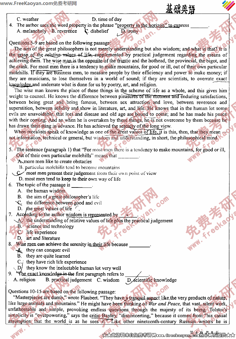 专业课考研经验 本站小编 FreeKaoyan 2018-01-23南开大学2004年考研真题-基础英语
