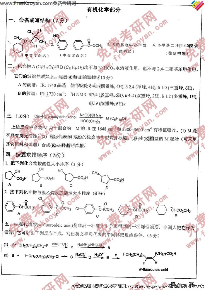 专业课考研经验 本站小编 FreeKaoyan 2018-01-23南开大学2005年考研真题-有机化学