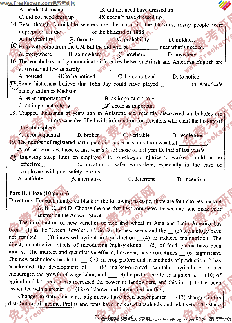 专业课考研经验 本站小编 FreeKaoyan 2018-01-23南开大学2005年考研真题-基础英语