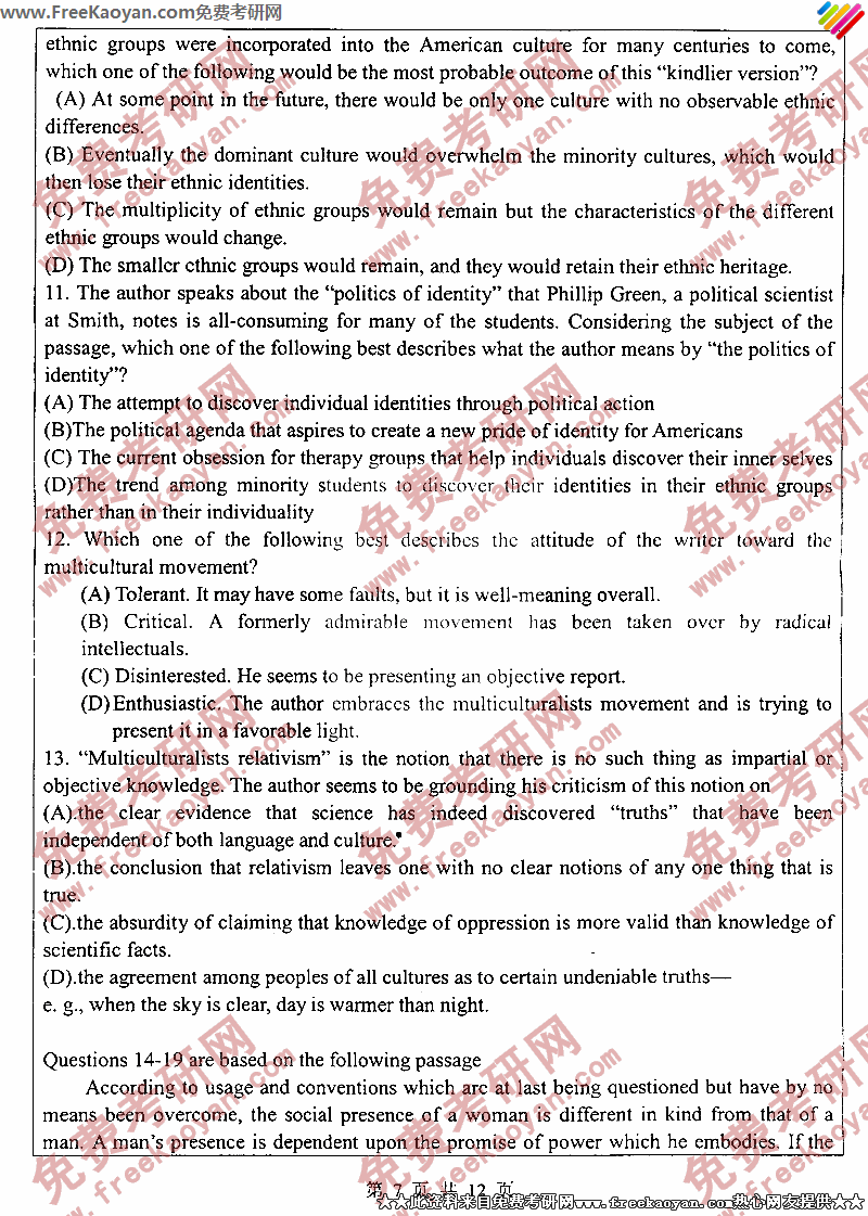 专业课考研经验 本站小编 FreeKaoyan 2018-01-23南开大学2005年考研真题-基础英语