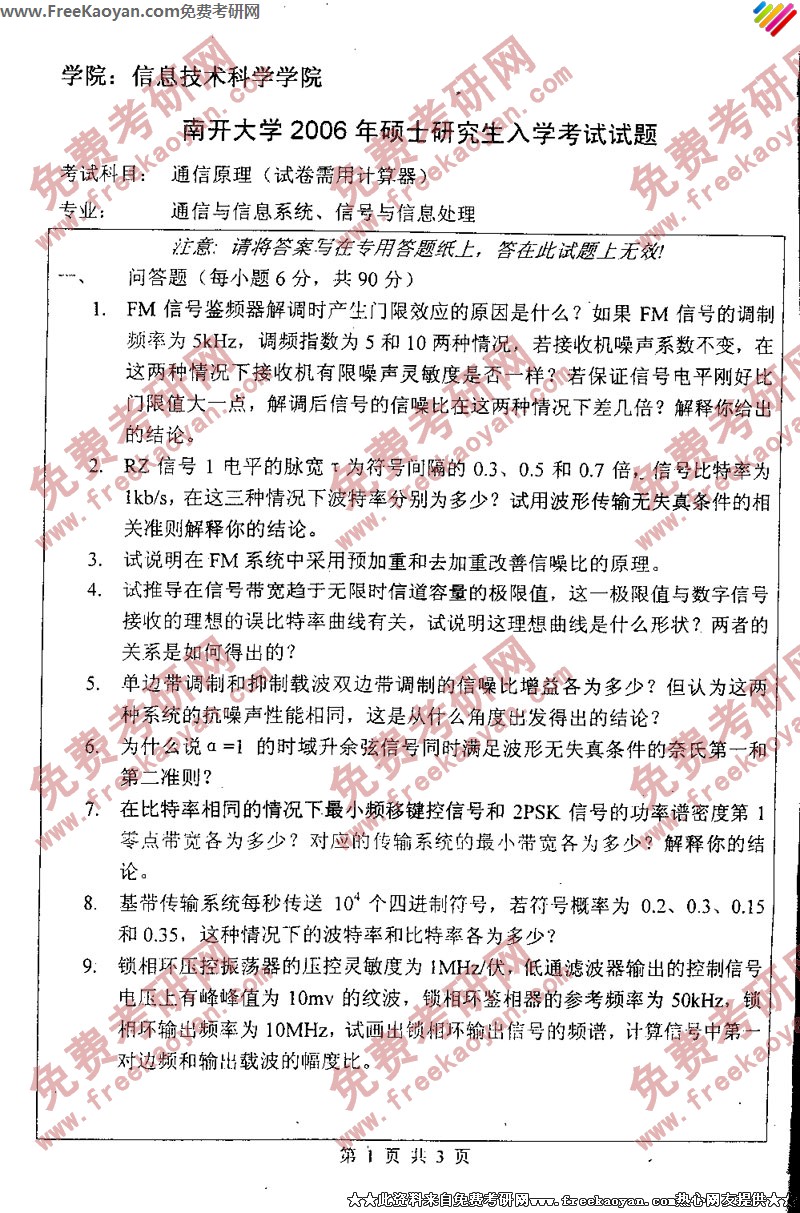 专业课考研经验 本站小编 FreeKaoyan 2018-01-23南开大学2005年考研真题-通信原理