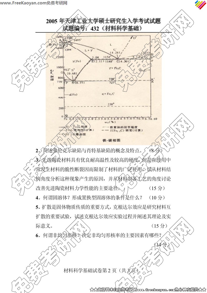 天津工业大学2005年考研真题-材料科学基础(2)