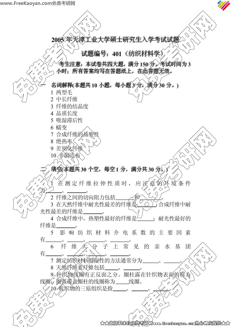 相关话题/考研真题 天津工业大学 材料学 纺织
