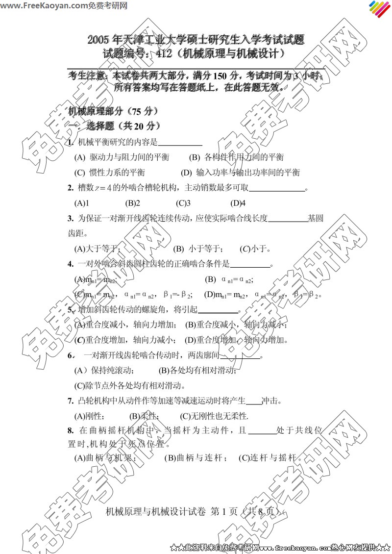 相关话题/考研真题 天津工业大学 机械设计 机械原理