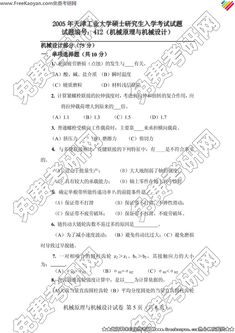 天津工业大学2005年考研真题-机械原理与机械设计(5)