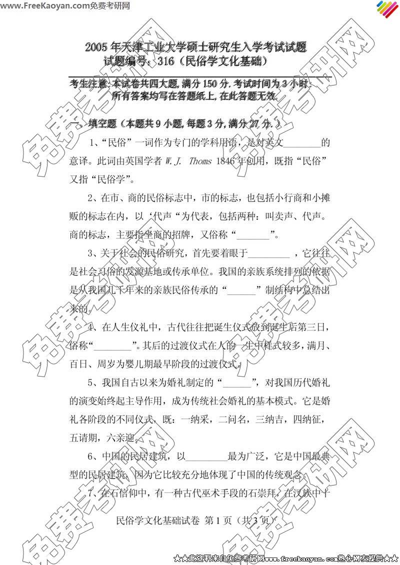相关话题/考研真题 天津工业大学 民俗学 基础 文化