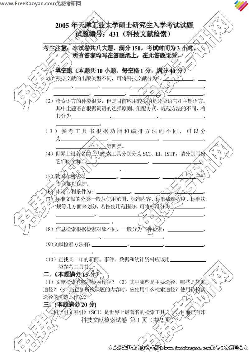 相关话题/考研真题 天津工业大学 文献检索 网络