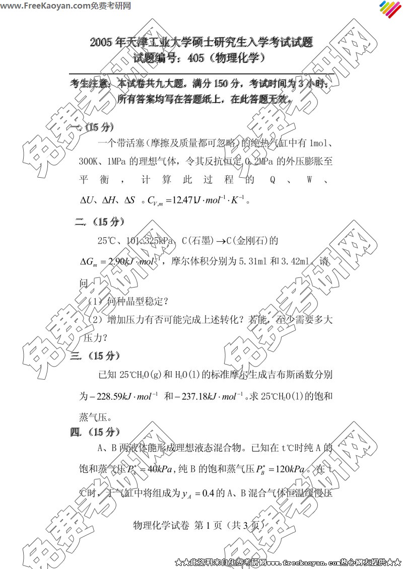相关话题/天津工业大学 考研真题 物理化学