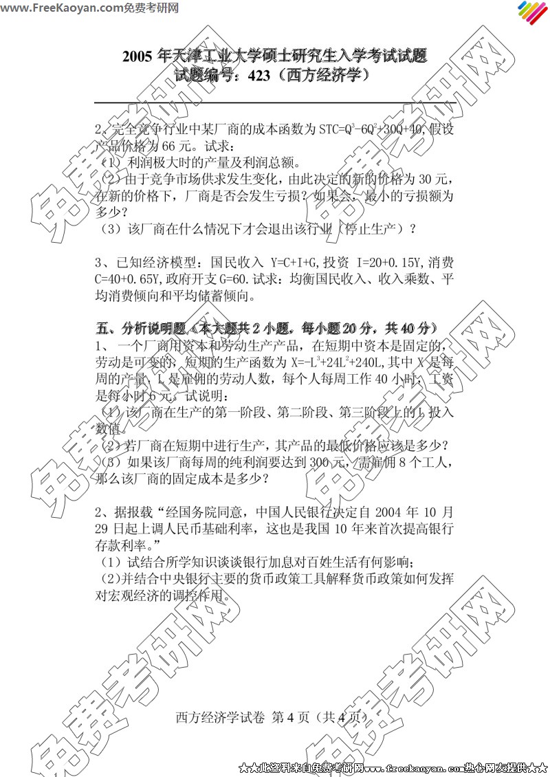 专业课考研经验 本站小编 FreeKaoyan 2018-01-23天津工业大学2005年考研真题-平面设计