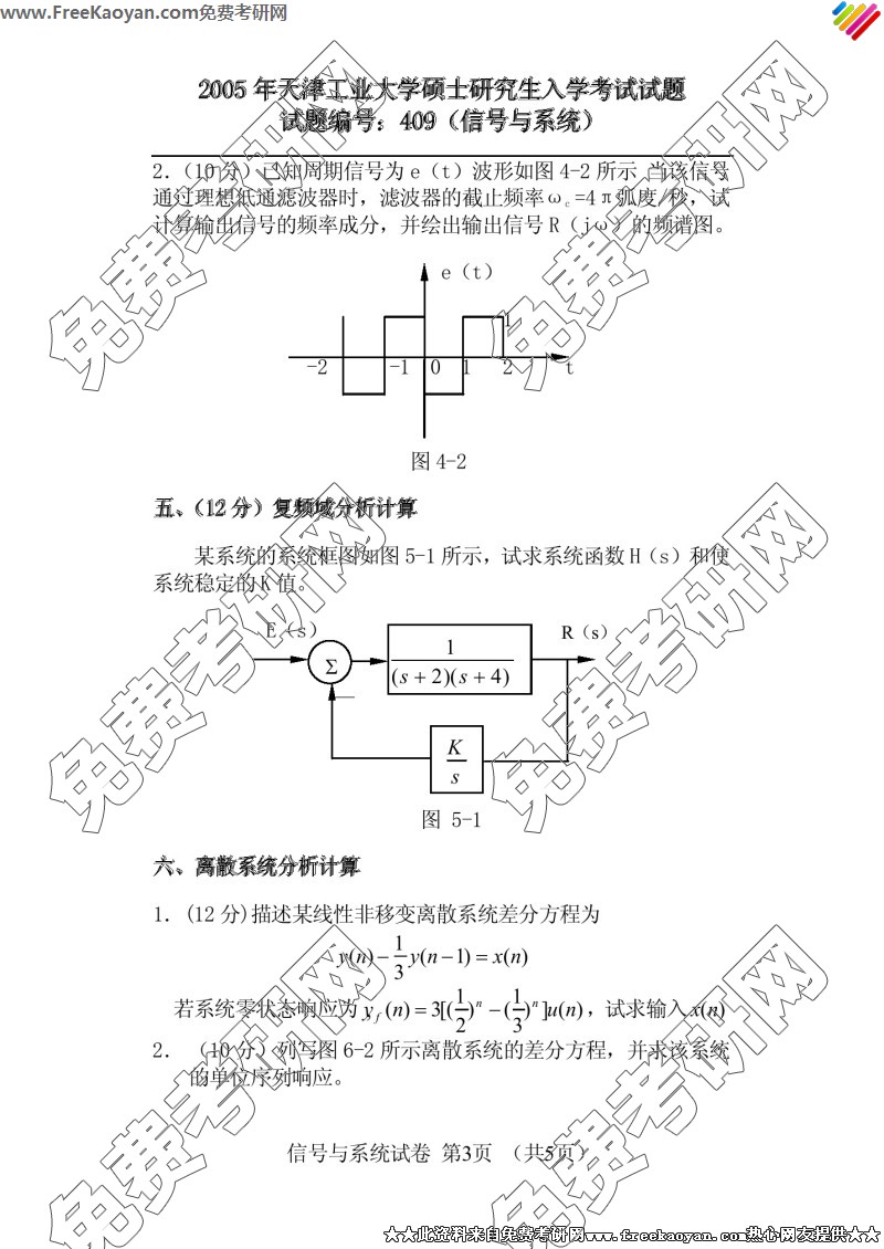 专业课考研经验 本站小编 FreeKaoyan 2018-01-23天津工业大学2005年考研真题-数字信号处理