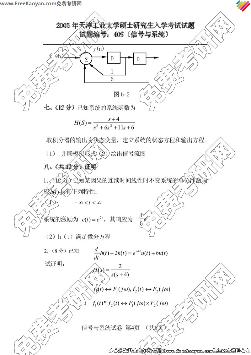 专业课考研经验 本站小编 FreeKaoyan 2018-01-23天津工业大学2005年考研真题-数字信号处理