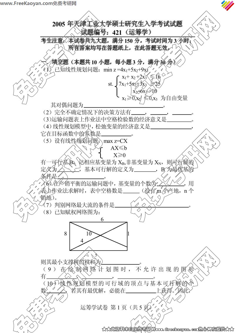 专业课考研经验 本站小编 FreeKaoyan 2018-01-23天津工业大学2005年考研真题-网络文献检索
