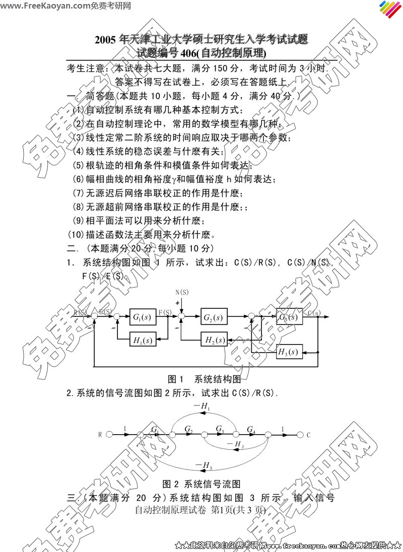 专业课考研经验 本站小编 FreeKaoyan 2018-01-23天津工业大学2005年考研真题-信号与系统