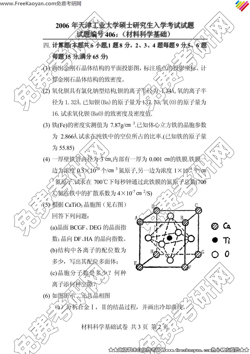 天津工业大学2006年考研真题-材料科学基础(406)(2)