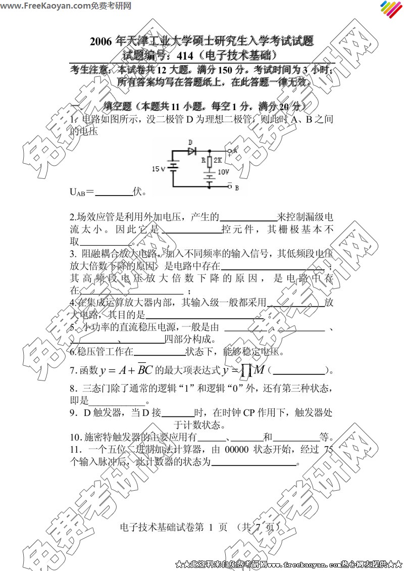 天津工业大学2006年考研真题-电子技术基础(414)