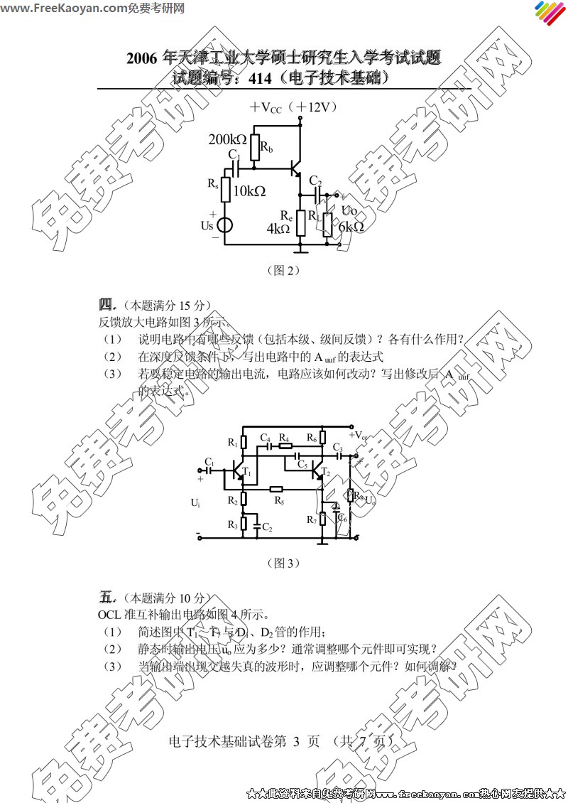 天津工业大学2006年考研真题-电子技术基础(414)(3)