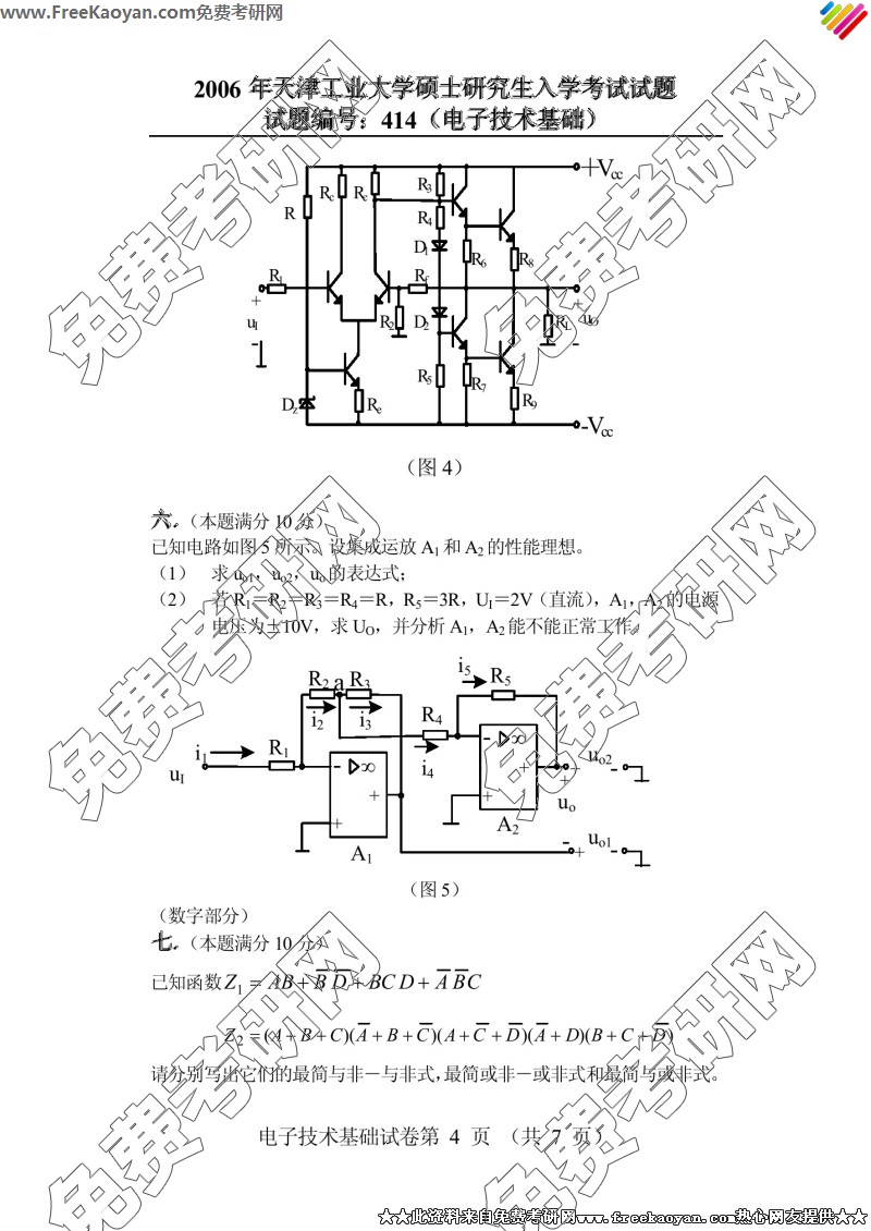 天津工业大学2006年考研真题-电子技术基础(414)(4)